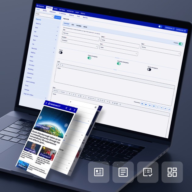 Create, edit, and publish digital content effortlessly. Our CMS provides intuitive, form-based management for every content type - from articles and pages to surveys and modular elements - giving full control without technical complexity.